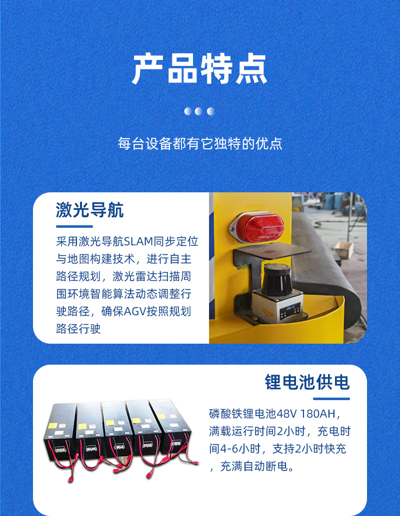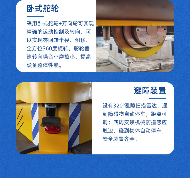 PLC控制系統(tǒng)通過無線AP可對AGV小車進行遠程操控,通過站點控制臺按鈕呼叫車輛運行,鋰電池供電滿載運行時間不低于2小時,配備自動充電樁,按照程序設(shè)定低于電量設(shè)定值后自行前往充電樁自動充電,支持2小時快充充滿自動斷電。輪系配備臥式驅(qū)動輪搭配萬向輪可全向運行。伺服電機伺服行星減速機***控制車輪轉(zhuǎn)向,實現(xiàn)前進后退 左轉(zhuǎn)右轉(zhuǎn) 縱橫移動 原地旋轉(zhuǎn)等運動控制,差速轉(zhuǎn)向的轉(zhuǎn)彎方式噪音小不易損傷地面,安全裝置配置雷達檢測自動避障,聲光報警、急停開關(guān),車體四周機械防撞,安全性直接拉滿,確保AGV小車平穩(wěn)安全運輸作業(yè)。