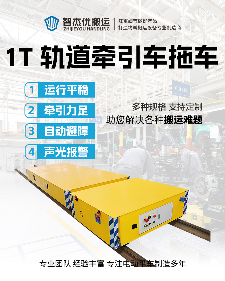 描   述: 電動(dòng)軌道牽引車+無動(dòng)力拖車車組,通過前方牽引車帶動(dòng)后方無動(dòng)力拖車及貨物平穩(wěn)運(yùn)行。高強(qiáng)鋼車架箱梁結(jié)構(gòu)穩(wěn)定牢固。搭載高密度工業(yè)牽引蓄電池,結(jié)合高效減速機(jī)電機(jī)驅(qū)動(dòng)系統(tǒng),輸出扭矩強(qiáng)勁穩(wěn)定,輕松牽引拖車及貨物。配備工業(yè)級(jí)無線遙控系統(tǒng),操作簡單方便。適用于噴漆房、噴砂房、地鐵隧道內(nèi)牽引施工材料及設(shè)備等工況。