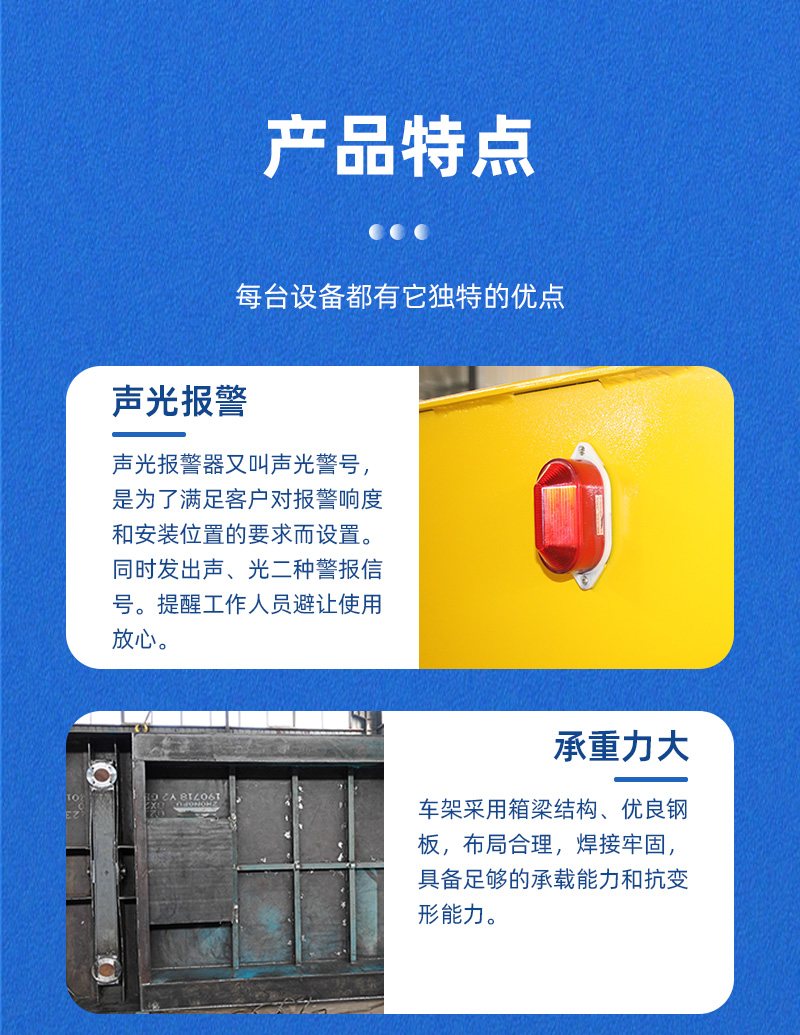 公司保障:電動(dòng)平車、軌道平車的承重安全系數(shù)不低于60%