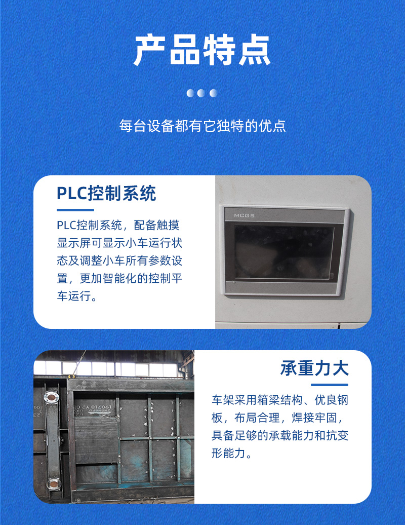 公司保障:電動平車、軌道平車的承重安全系數(shù)不低于60%