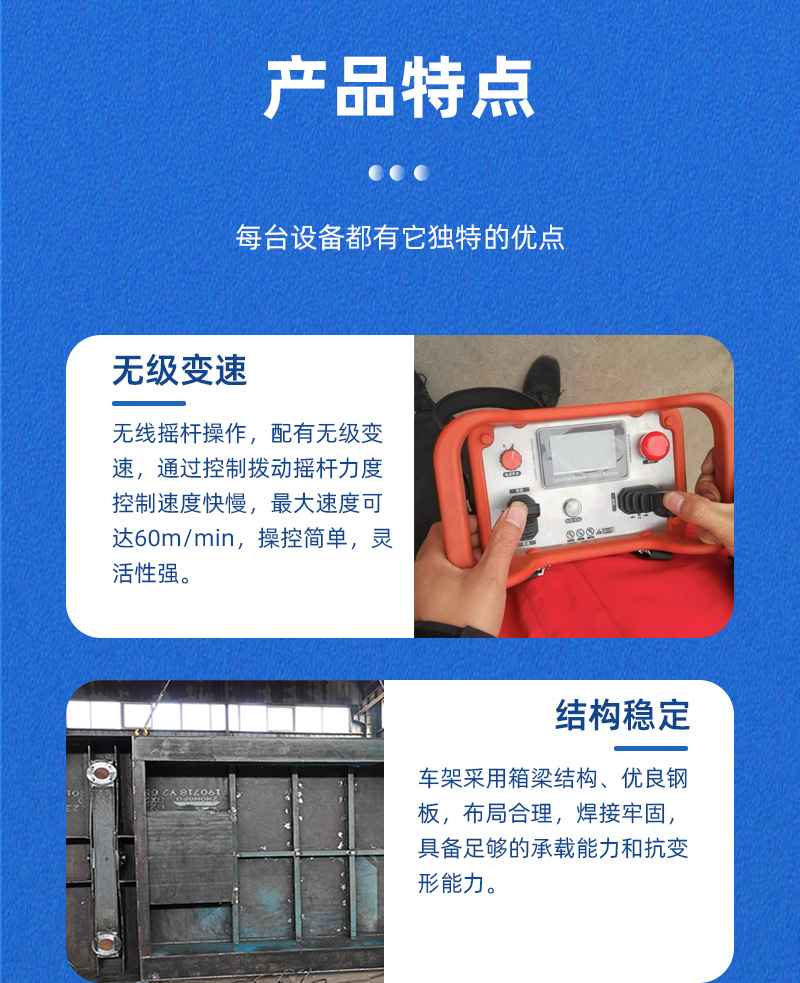 公司保障:電動(dòng)平車、軌道平車的承重安全系數(shù)不低于60%