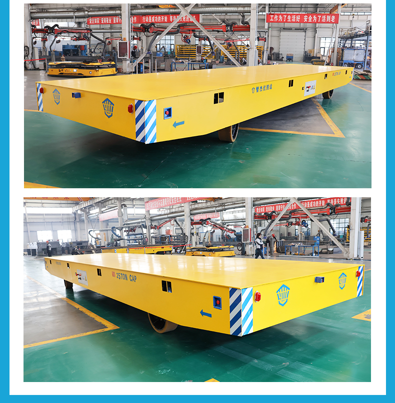 熱線:15517329551 10米無(wú)軌搬運(yùn)車(chē)設(shè)備運(yùn)輸平板車(chē),整車(chē)長(zhǎng)10米寬2.5米高0.95米額定載重25噸,主要用于大型涂裝設(shè)備的跨車(chē)間轉(zhuǎn)運(yùn)作業(yè)。車(chē)體尺寸根據(jù)物料大小一對(duì)一定制,車(chē)架箱梁結(jié)構(gòu)鋼板焊接穩(wěn)定牢固載重力強(qiáng)不易變形,耐摔耐砸扛造,蓄電池供電節(jié)能環(huán)保,無(wú)線遙控控制平車(chē)前進(jìn)后退、左轉(zhuǎn)右轉(zhuǎn),速度可調(diào)節(jié)。減速機(jī)電機(jī)車(chē)橋驅(qū)動(dòng)結(jié)構(gòu)緊湊傳動(dòng)效率高、液壓轉(zhuǎn)向穩(wěn)定靈活,大直徑聚氨酯包膠輪適應(yīng)多種地面運(yùn)行,該車(chē)設(shè)計(jì)可爬15度的坡進(jìn)行室外運(yùn)行,光電檢測(cè)遇到障礙自動(dòng)停車(chē)安全性高,該系列電動(dòng)平車(chē)結(jié)構(gòu)簡(jiǎn)單、故障率低、維護(hù)簡(jiǎn)單,是車(chē)間內(nèi)高效率的搬運(yùn)工具,可進(jìn)行深度化定制!