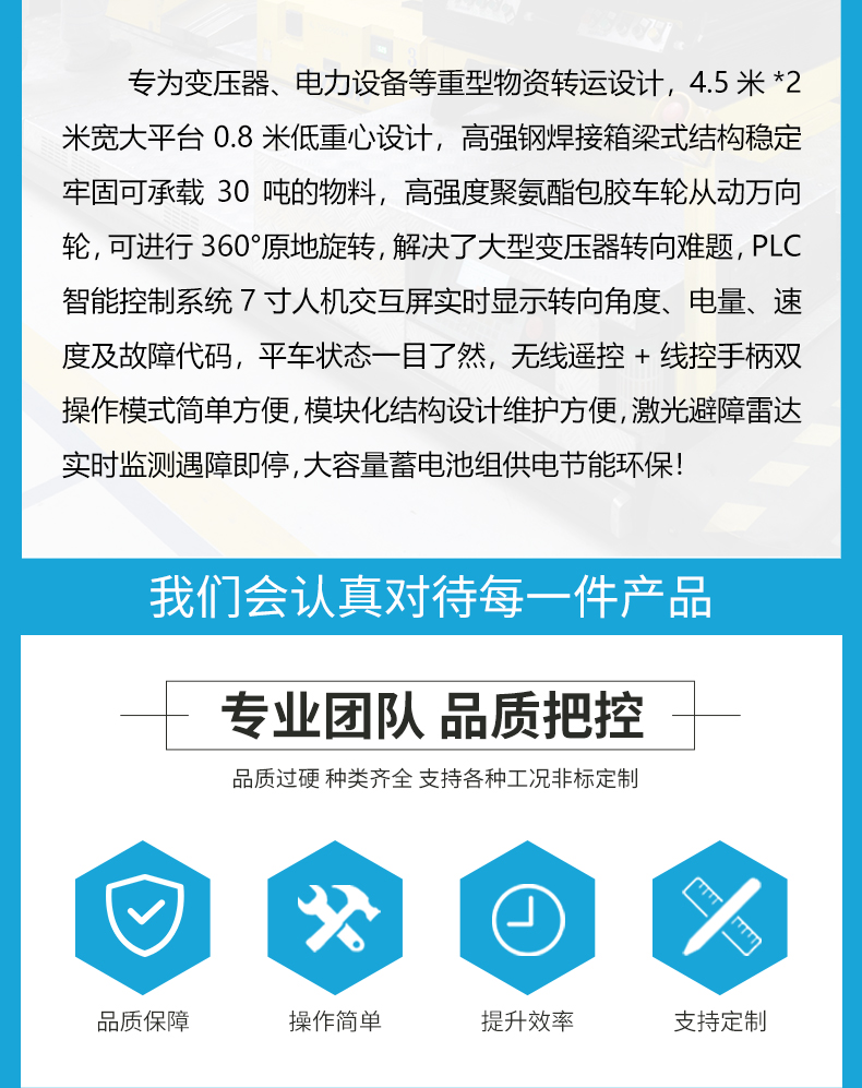 河南智杰優(yōu)搬運(yùn)設(shè)備有限公司以“質(zhì)量取勝,服務(wù)取勝”的經(jīng)營理念,為了客戶的利益,公司建立了一整套快速的質(zhì)量信