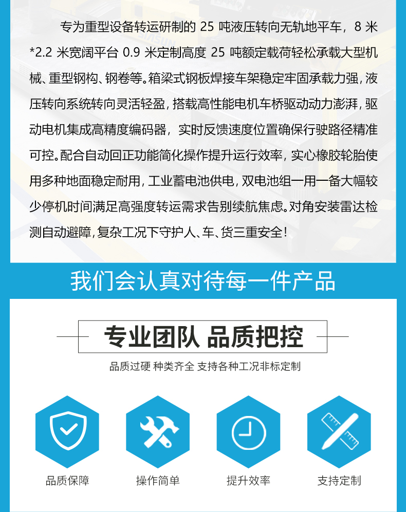 描   述: 您是否還在為跨車間轉(zhuǎn)運物料而發(fā)愁?解決方案來了,智杰優(yōu)搬運研制的液壓轉(zhuǎn)向無軌電動平板車,專為高效、靈活、安全的車間過跨轉(zhuǎn)運而生!