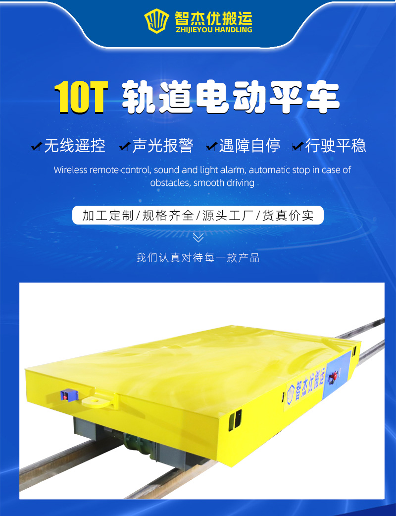熱線:15517329551 軌道牽引車是現(xiàn)代智能搬運(yùn)設(shè)備,智能遙控控制使用的運(yùn)輸?shù)墓ぞ?,也是過跨車的一種產(chǎn)品類型。軌道平車是使用電動(dòng)驅(qū)動(dòng)系統(tǒng)的平臺(tái)式運(yùn)輸車輛,多用于搬運(yùn)和移動(dòng)重型貨物或設(shè)備。具有運(yùn)載力強(qiáng)、綠色節(jié)能、卓效穩(wěn)定、靈活機(jī)動(dòng)等優(yōu)點(diǎn)。車身整體設(shè)計(jì)緊湊結(jié)構(gòu)完善,四周還裝備了聲光報(bào)警器、避障雷達(dá)等,再使用過程中保障正常運(yùn)行的同時(shí)提醒現(xiàn)場(chǎng)人員注意四周。軌道平車被廣泛的應(yīng)用于工業(yè)、鐵路和港口等領(lǐng)域,使其成為現(xiàn)代工業(yè)和港口碼頭等領(lǐng)域中重要的運(yùn)輸工具。