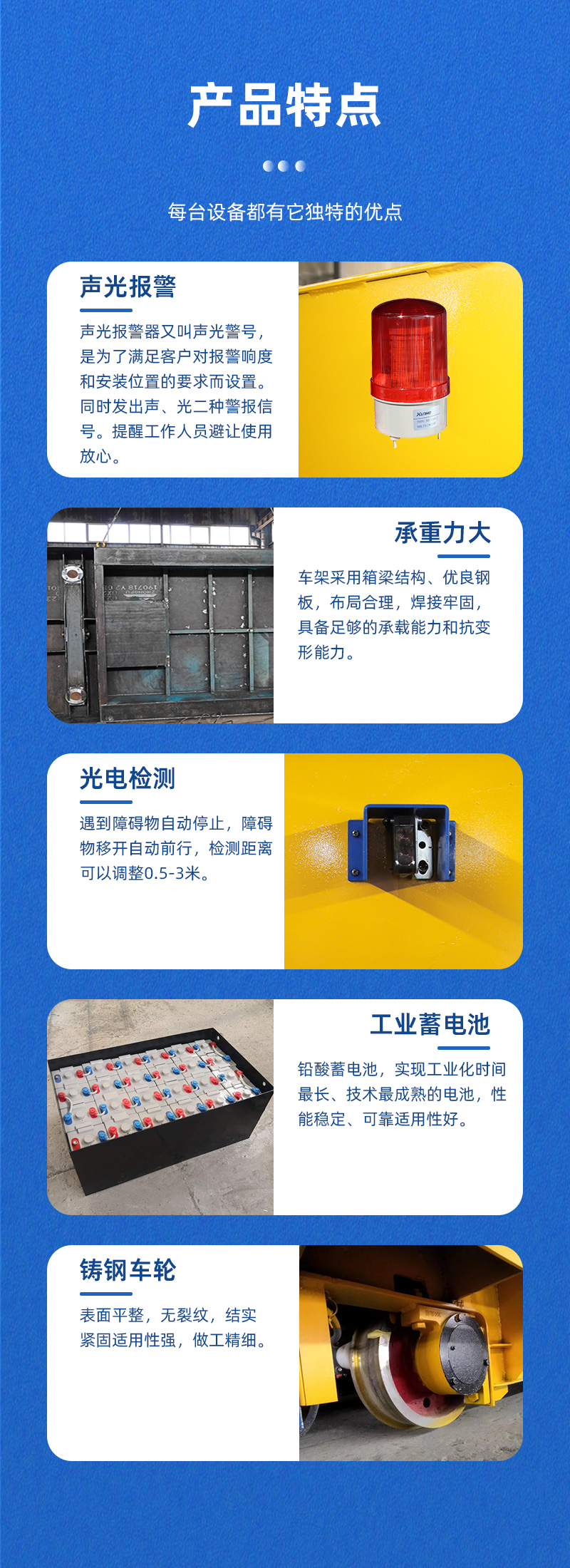 這是一臺小型軌道搬運(yùn)車載重試機(jī)現(xiàn)場,整車長1.2米寬1.2米高0.45米載重2噸,箱梁結(jié)構(gòu)穩(wěn)定牢固,不易變形;無線遙控平車前進(jìn)后退,采用鑄鋼車輪,硬度高耐磨損承重力強(qiáng),電機(jī)減速機(jī)驅(qū)動平車進(jìn)行搬運(yùn)作業(yè),限位開關(guān)可實(shí)現(xiàn)平車定點(diǎn)??孔鳂I(yè),前后配備光電檢測遇障自停,聲光報警保障安全,該系列電動平車還可進(jìn)行功能升級、升降臺面、弧形軌道運(yùn)行等。