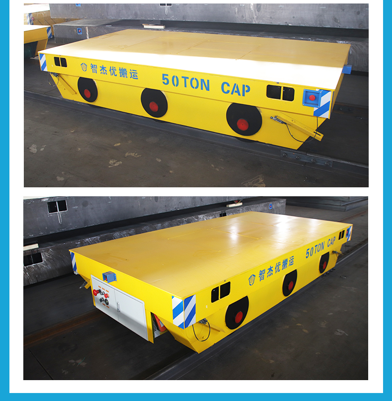 描   述: 佛山客戶訂購(gòu)的2臺(tái)軌道平板搬運(yùn)車,長(zhǎng)3米寬1.6米高0.6米,一臺(tái)載重30噸,一臺(tái)載重50噸,用于生產(chǎn)線設(shè)備半成品及成品的搬運(yùn),車架箱型梁結(jié)構(gòu)穩(wěn)定承重力強(qiáng),蓄電池供電電池容量大,2臺(tái)車共用3套電池增加工作時(shí)長(zhǎng),無線遙控控制平車前進(jìn)后退、支持一鍵加減速提速快,設(shè)置4組限位開關(guān)可多點(diǎn)位定點(diǎn)停靠搬運(yùn)作業(yè),6組鑄鋼車輪承重力強(qiáng),光電檢測(cè)遇到障礙物自動(dòng)停車,聲光報(bào)警提醒工作人員注意避讓,急停開關(guān)可緊急停車確