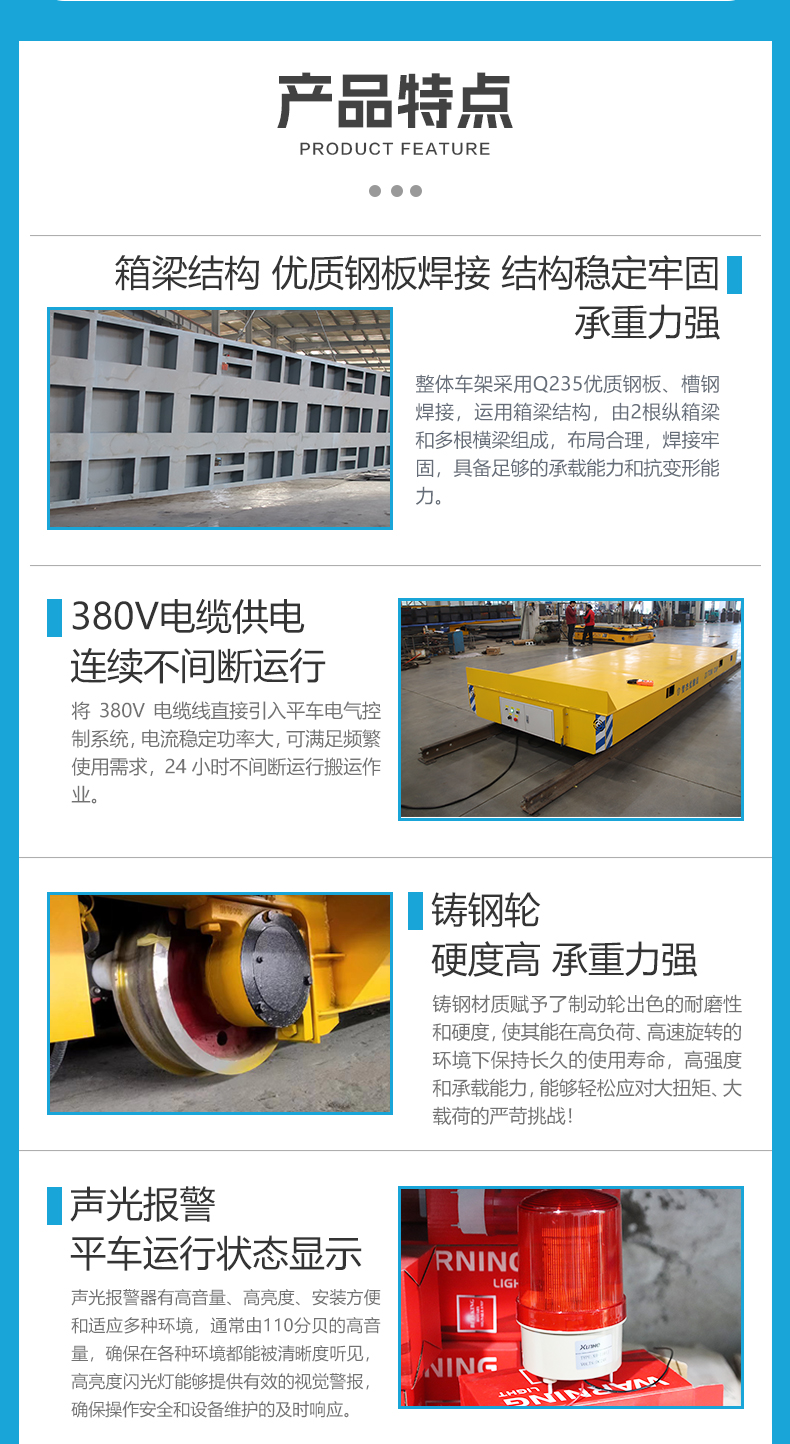公司保障:電動(dòng)平車(chē)、軌道平車(chē)的承重安全系數(shù)不低于60%