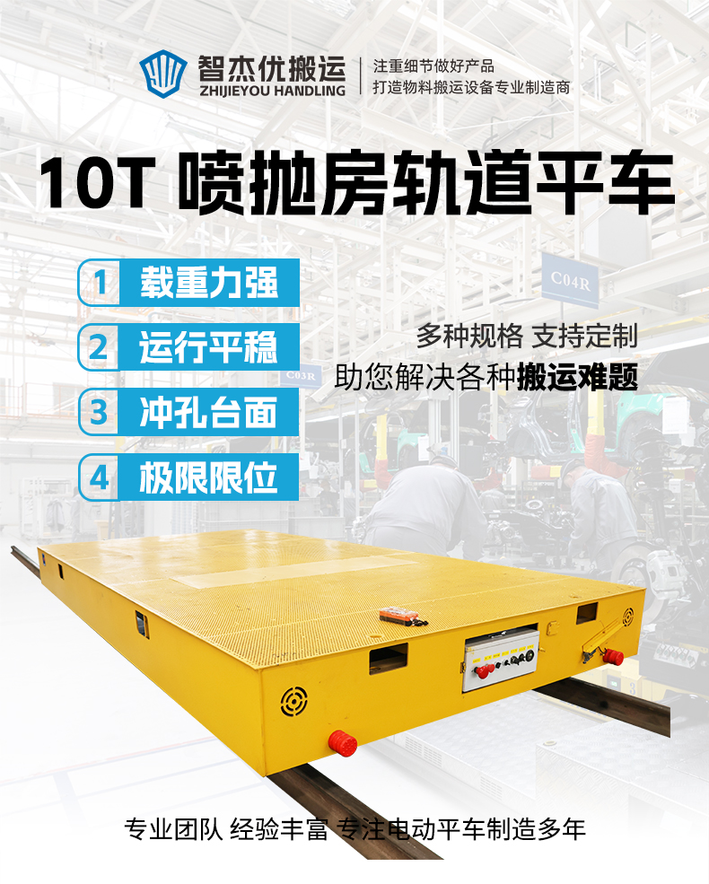 描   述: 噴拋一體房專(zhuān)用軌道平板車(chē),5米*2.5米寬大平臺(tái),匹配10噸額定載重,輕松應(yīng)對(duì)工件、機(jī)械設(shè)備及批量物料的轉(zhuǎn)運(yùn)需求。0.5米低重心設(shè)計(jì)運(yùn)行平穩(wěn)無(wú)傾覆風(fēng)險(xiǎn),保障作業(yè)安全。臺(tái)面5mm沖孔板覆蓋鏤空區(qū)域,蜂窩狀孔洞設(shè)計(jì),快速排水排屑,防滑防積塵,適應(yīng)噴拋、清洗等濕滑工況。減速機(jī)電機(jī)驅(qū)動(dòng),啟停平穩(wěn)無(wú)沖擊。