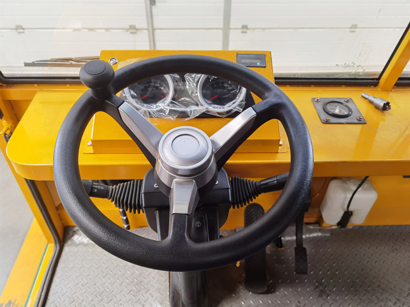 與傳統(tǒng)手柄操控方式不同,該車型采用復(fù)合人體工程學(xué)的方向盤駕駛模式,駕駛員通過控制方向盤及電動踏板輕松實(shí)現(xiàn)***轉(zhuǎn)向與行駛控制,大幅降低操作門檻,駕駛室配備高清儀表盤、多功能按鍵及舒適座椅,兼顧安全性與操作便捷性,適用于工廠、倉庫、物流園區(qū)等復(fù)雜場景的短途轉(zhuǎn)運(yùn)需求。