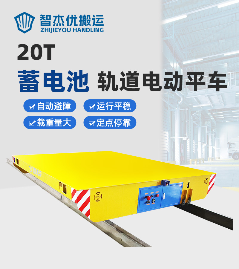 熱線:15517329551 智杰優(yōu)搬運為設(shè)備制造業(yè)設(shè)計生產(chǎn)的蓄電池軌道平板車,長3米寬2.4米高0.45米額定載重20噸,主要用于設(shè)備生產(chǎn)線大型設(shè)備零部件的轉(zhuǎn)運作業(yè),蓄電池供電續(xù)航時間長,采用無線遙控、線控手柄兩種操作方式,平車車架箱梁結(jié)構(gòu)穩(wěn)定載重力強,設(shè)有限位開關(guān),可實現(xiàn)軌道車定點??堪徇\作業(yè),同時極限限位防止小車沖出軌道,平車具有欠壓、過壓、過流、超載、短路、低電量等防護,前后光電檢測自動避障,聲光報警急停開關(guān)確保平車安全平穩(wěn)運輸作業(yè)!