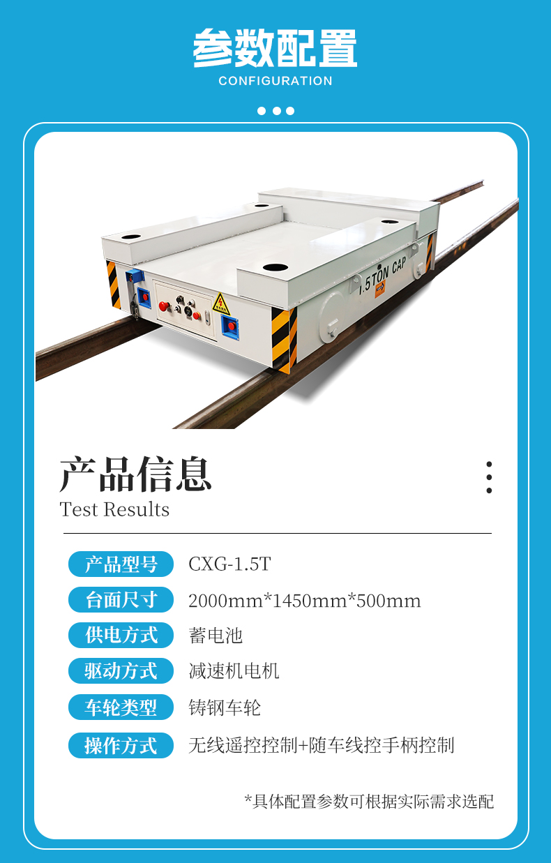 描   述: 環(huán)保設(shè)備需要移動底盤?這款小型軌道搬運車就很合適!卓越的穩(wěn)定性、強大的適配性和多重安全防護,無論用于設(shè)備的搭載作業(yè)還是車間內(nèi)的物料過跨,都是您的理想選擇!