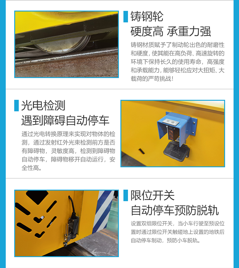 公司保障:電動(dòng)平車(chē)、軌道平車(chē)的承重安全系數(shù)不低于60%