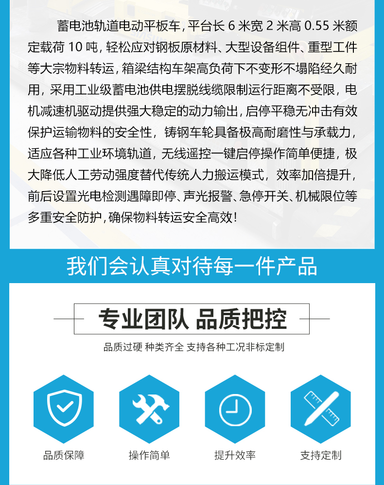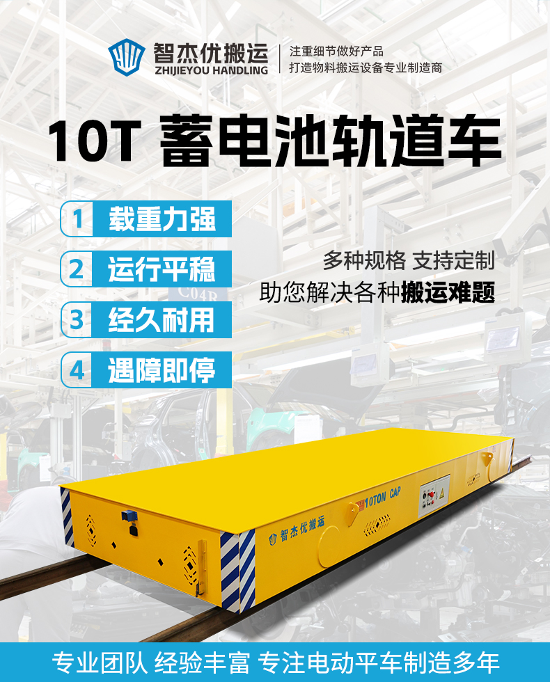 描   述: 車(chē)間內(nèi)鋼板原材料、大型設(shè)備組件、重型工件等大宗物料轉(zhuǎn)運(yùn)難?那你需要一臺(tái)蓄電池軌道電動(dòng)平板車(chē)來(lái)助力!集高承載、耐用度、安全性、便捷操作等性能于一身,車(chē)間效率轉(zhuǎn)運(yùn)提升70%!