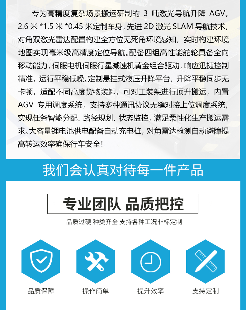 河南智杰優(yōu)搬運設(shè)備有限公司以“質(zhì)量取勝,服務(wù)取勝”的經(jīng)營理念,為了客戶的利益,公司建立了一整套快速的質(zhì)量信