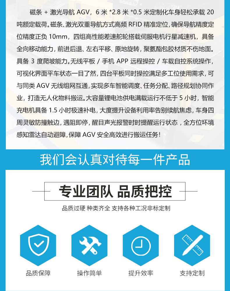 河南智杰優(yōu)搬運設(shè)備有限公司以“質(zhì)量取勝,服務(wù)取勝”的經(jīng)營理念,為了客戶的利益,公司建立了一整套快速的質(zhì)量信