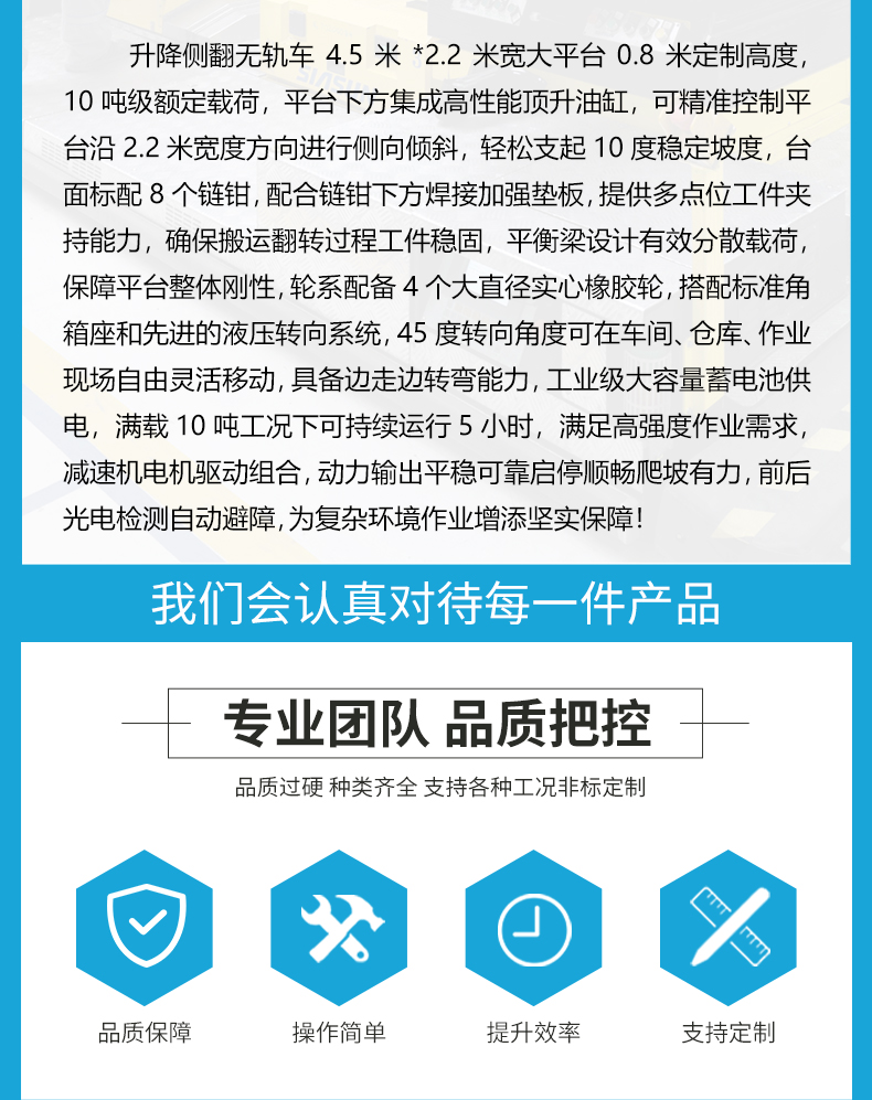 河南智杰優(yōu)搬運(yùn)設(shè)備有限公司以“質(zhì)量取勝,服務(wù)取勝”的經(jīng)營(yíng)理念,為了客戶(hù)的利益,公司建立了一整套快速的質(zhì)量信