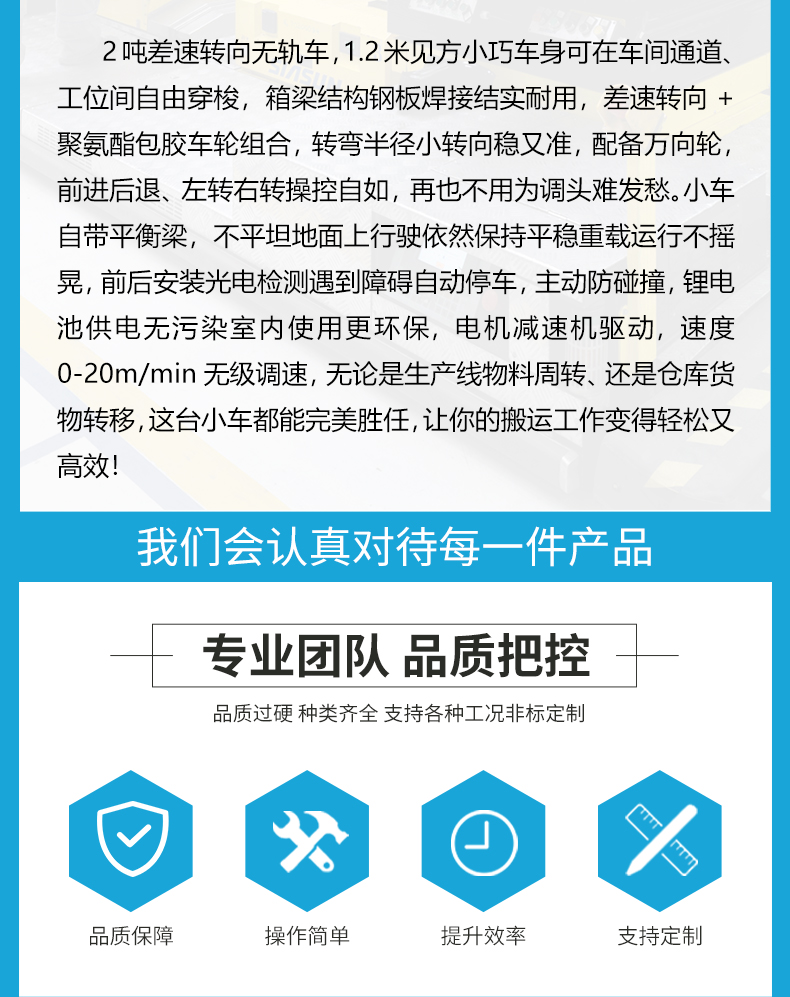 河南智杰優(yōu)搬運(yùn)設(shè)備有限公司以“質(zhì)量取勝,服務(wù)取勝”的經(jīng)營理念,為了客戶的利益,公司建立了一整套快速的質(zhì)量信