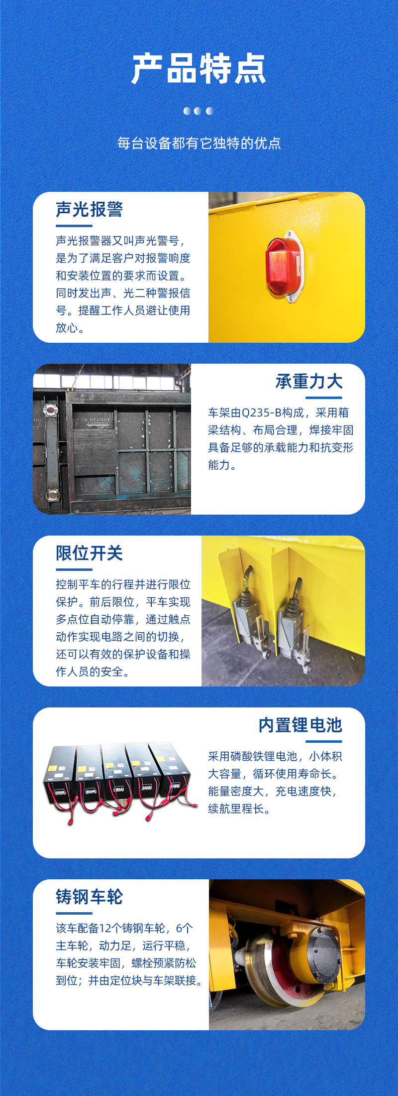 公司保障:電動平車、軌道平車的承重安全系數(shù)不低于60%